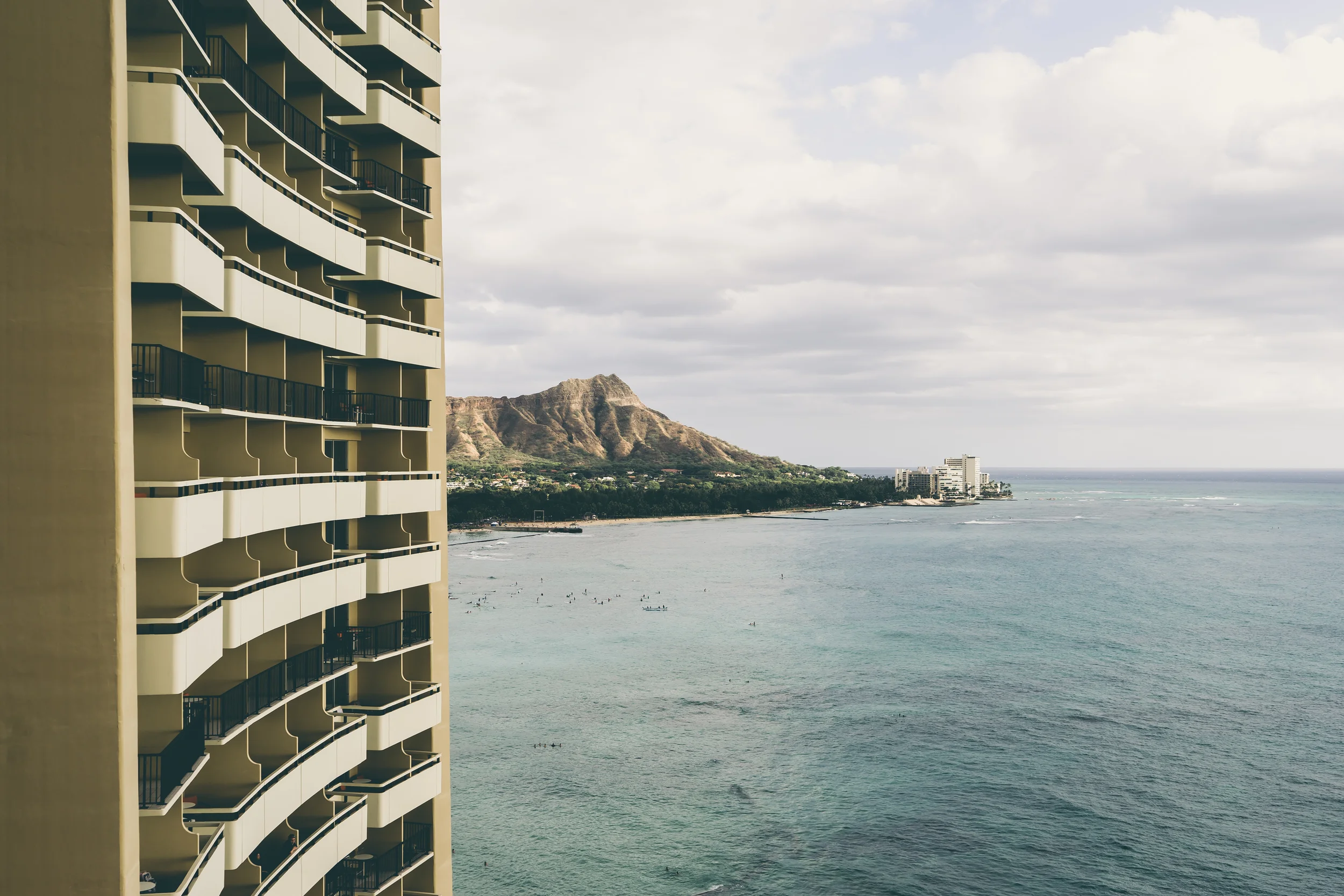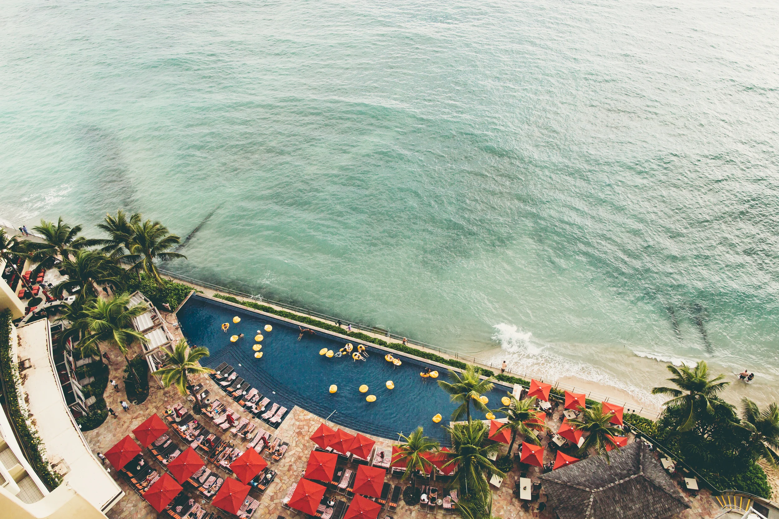 The Sheraton Waikiki pool down below. Still kicking myself for not jumping in during our stay.