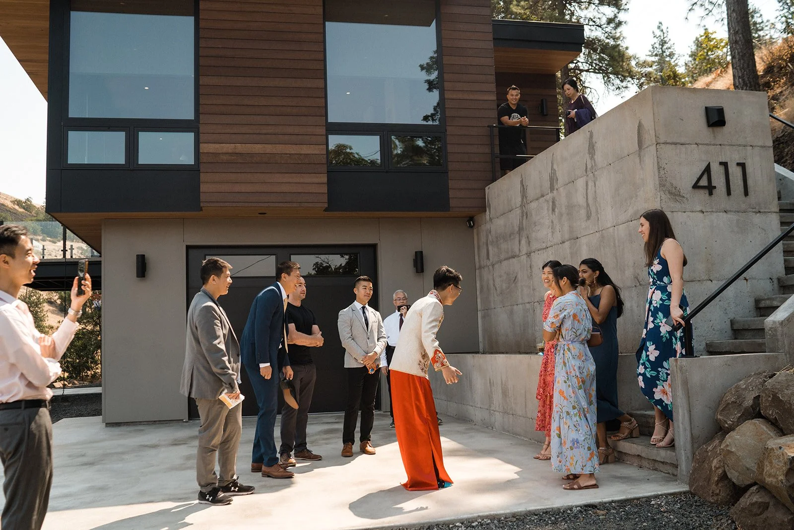 When Jess & Wei celebrated their wedding at Mt Hood Orchard View, they discovered the venue didn’t have a dedicated getting-ready space. Instead, they rented a beautiful Airbnb in Hood River, Oregon. The cozy atmosphere gave them room to prepare with friends and family, while the soft natural light made for gorgeous pre-ceremony photos. If your venue doesn’t offer a suite, Airbnb homes are an excellent solution, especially in areas like Hood River, Bend, or the Willamette Valley.
