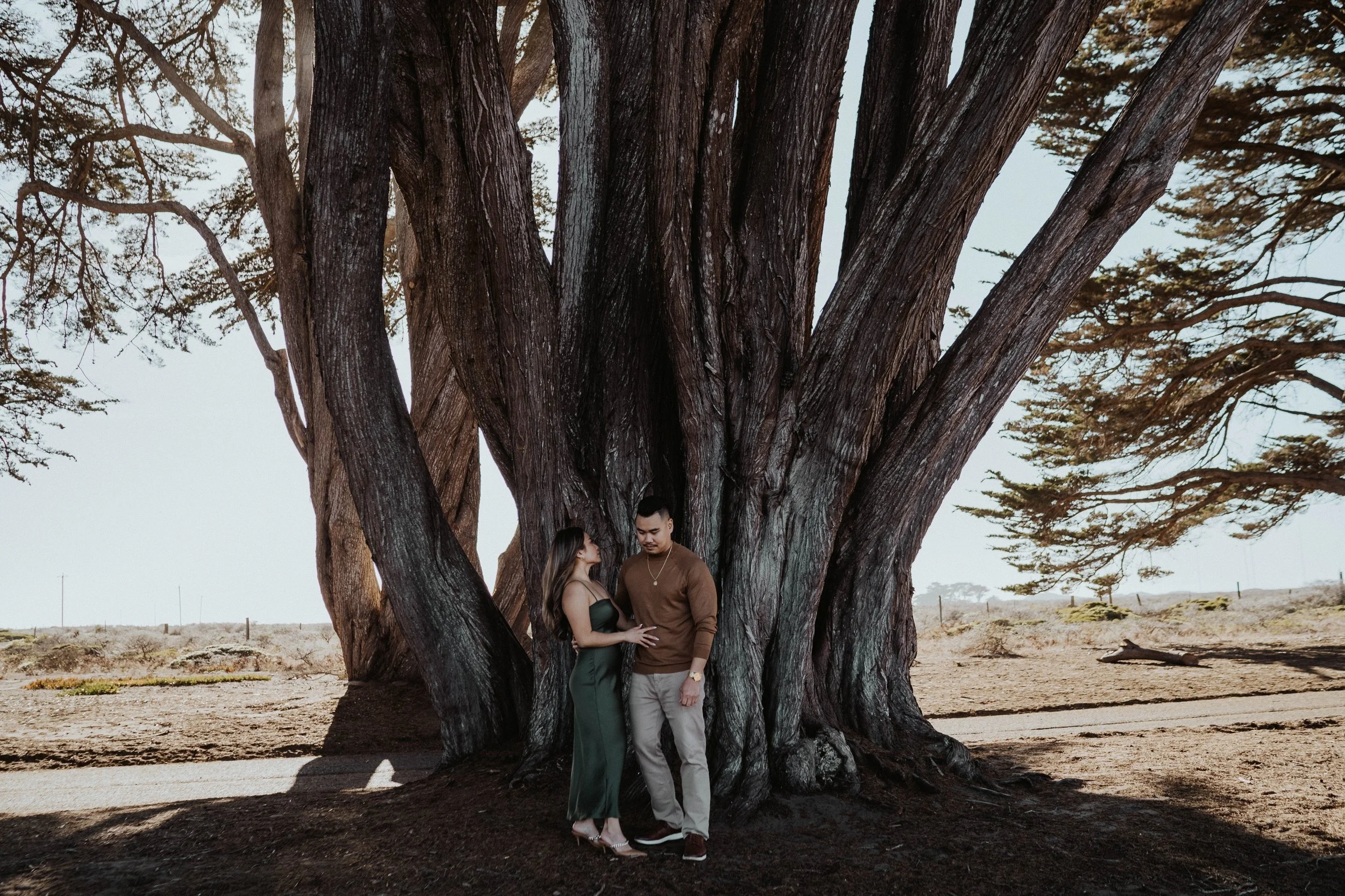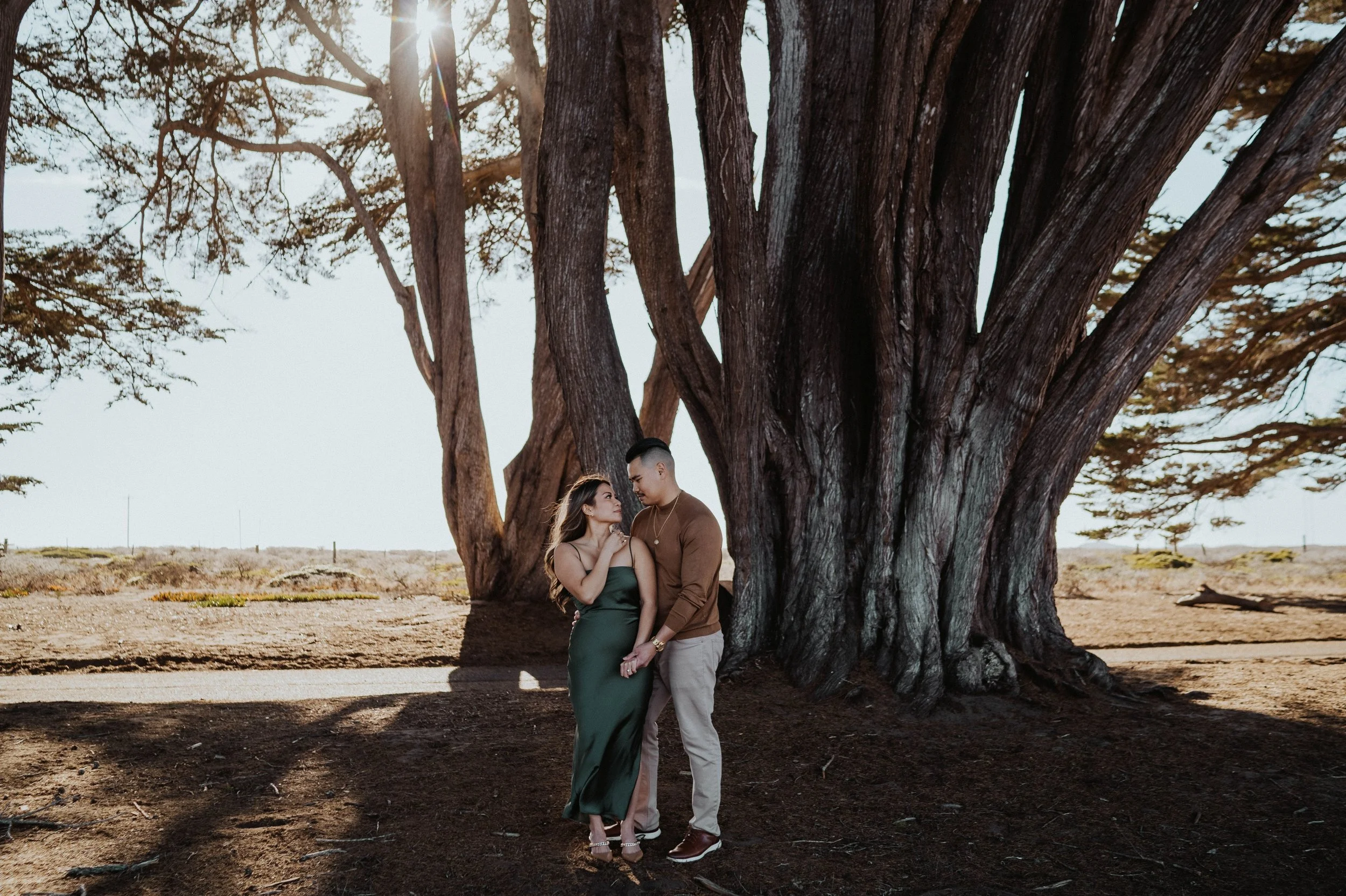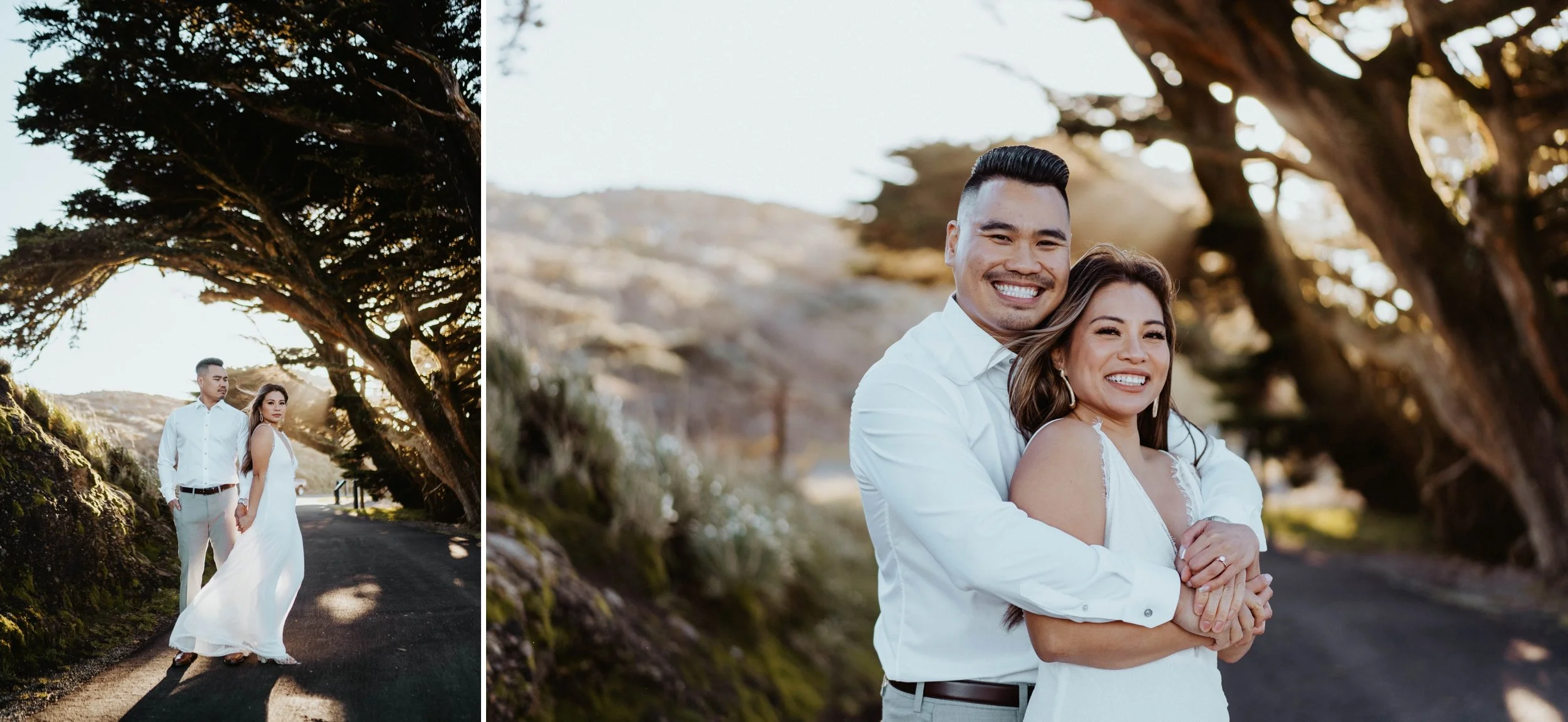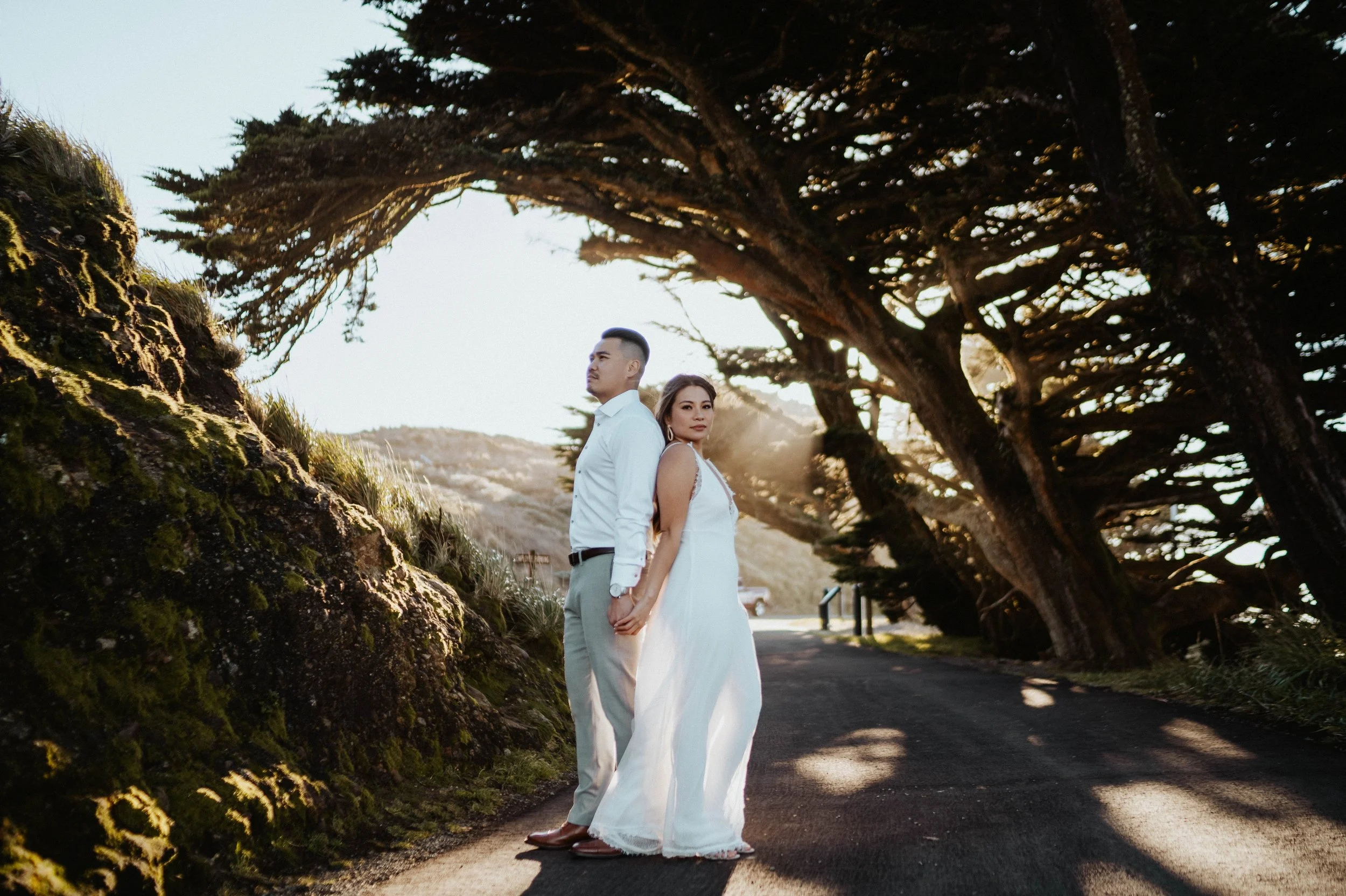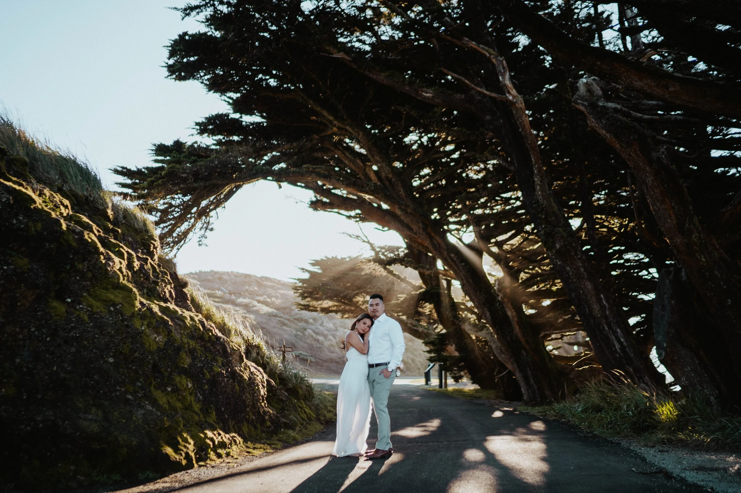 When it came time to plan April & Alfred’s connection session in the Bay Area, one could imagine the excitement that came over me when we settled on Point Reyes National Seashore area. Growing up in California, this was my stomping grounds for all things exploring and hiking - then to top off the hike we would treat ourselves with fresh oysters of Hog Island in Marshall, California. YUMMMM!!! The other cherry on the top? We were gonna hit up the Insta-famous Cypress Tree Tunnel. I have been DYING to shoot there as the Monterey cypress trees lines a quarter-mile driveway, arching over it to create an eye-pleasing tunnel effect. Unfortunately, the light wasn’t as soft and mystic as this place is usually known for, but we made the best of it!