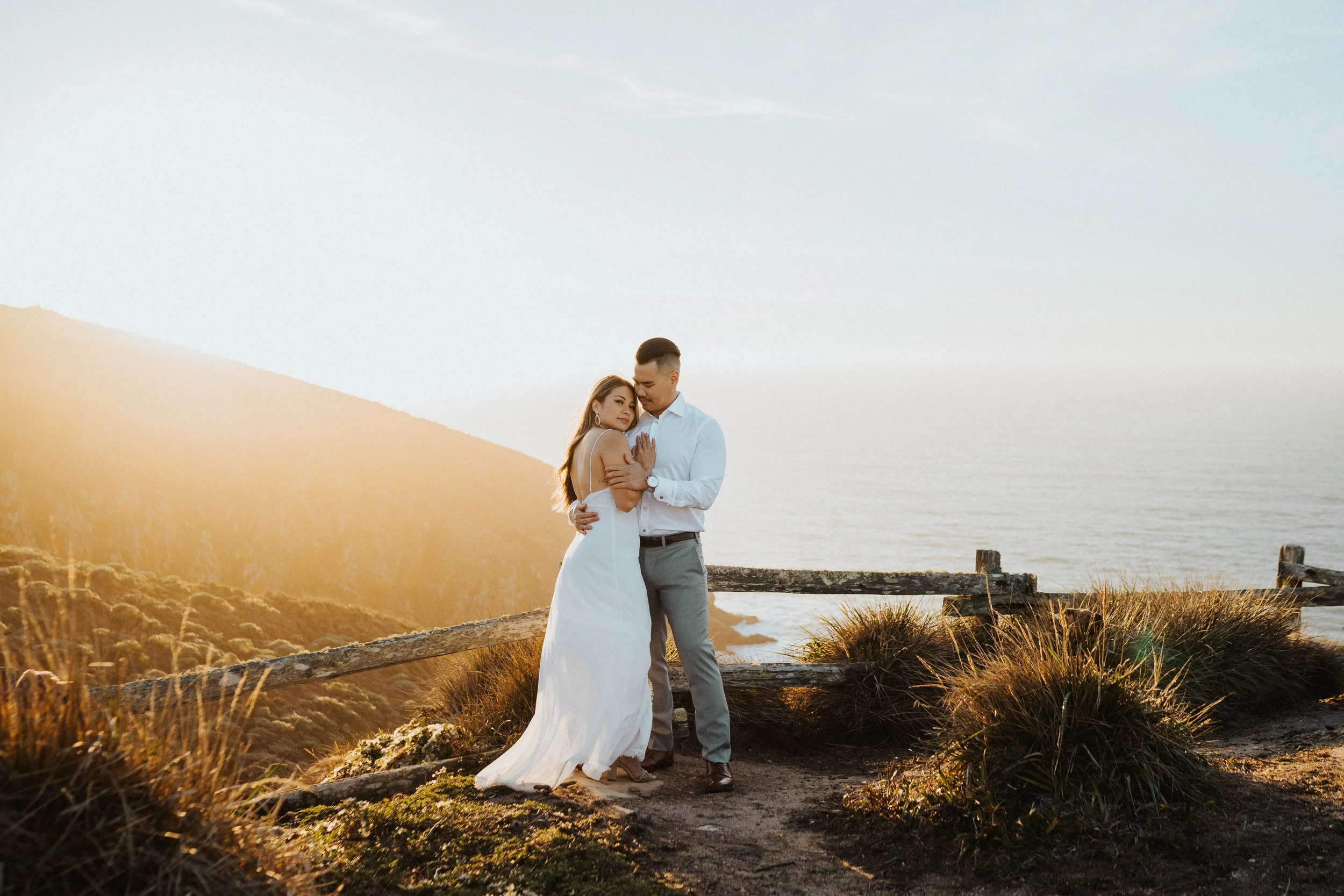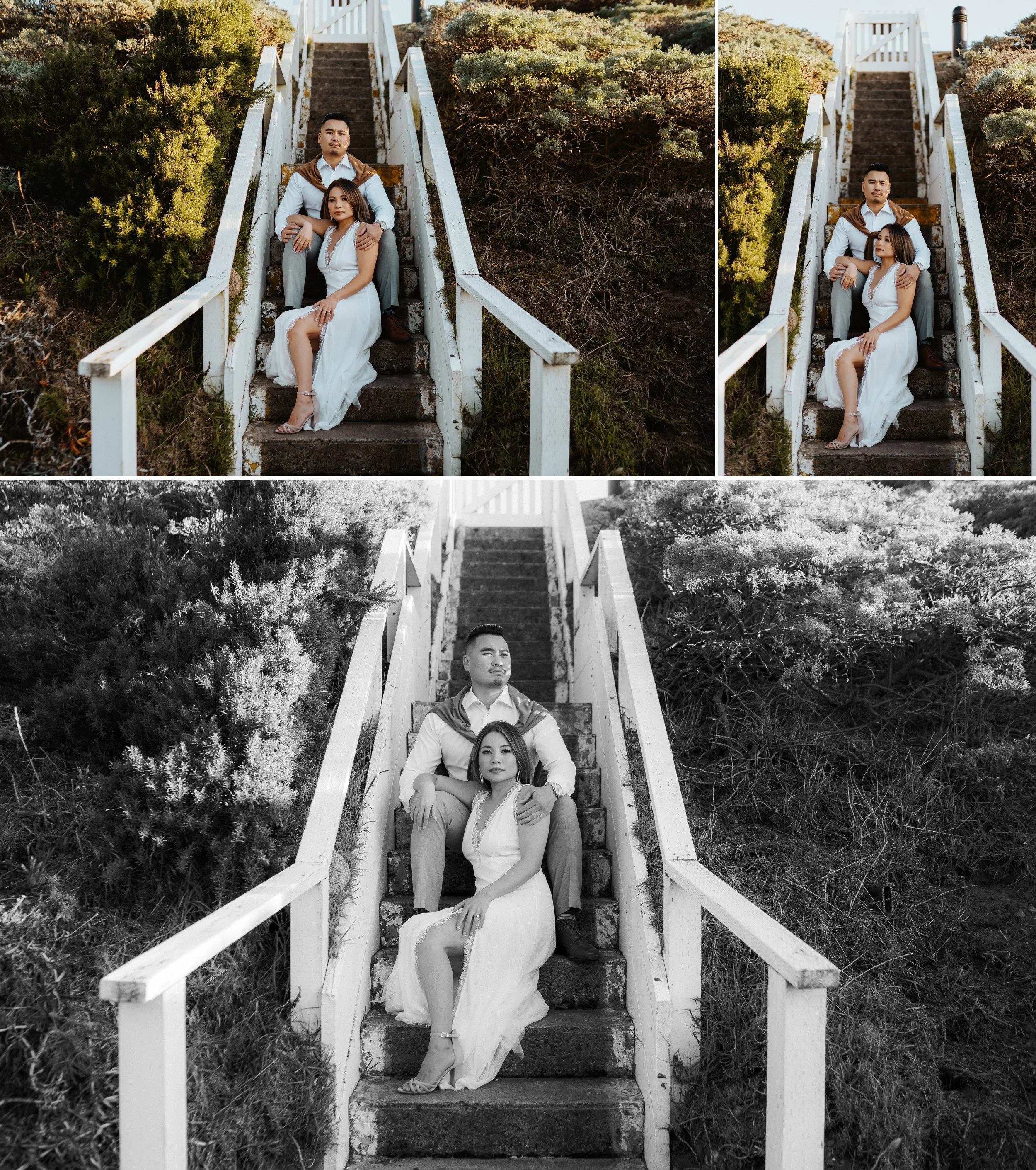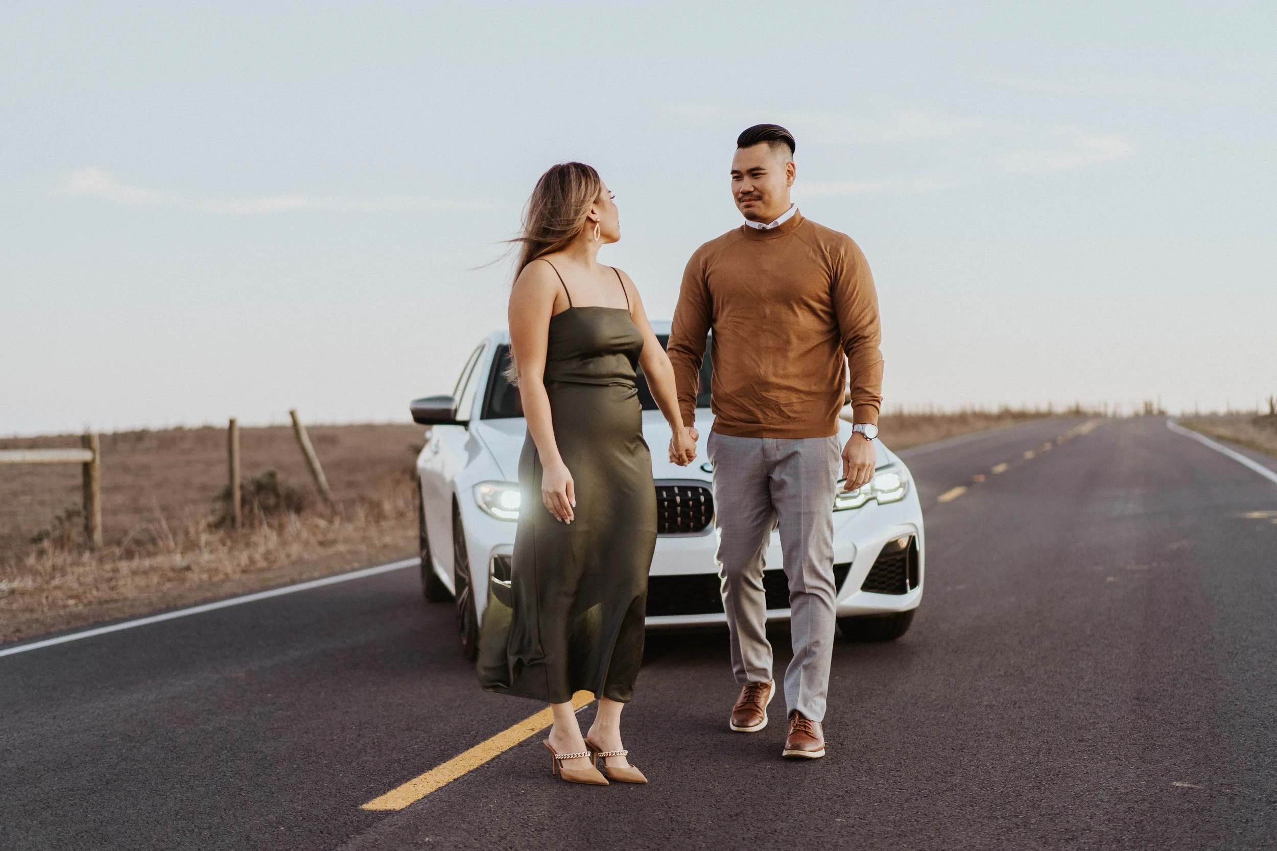 After shooting at the iconic coastline by the Point Reyes Lighthouse, I had to make use of the last light and Alfred’s beautiful BMW 3-series. So as we drove away from the lighthouse, we found a less-traveled road to stop in the middle of and took a couple of stunning last images to cap off the engagement session.